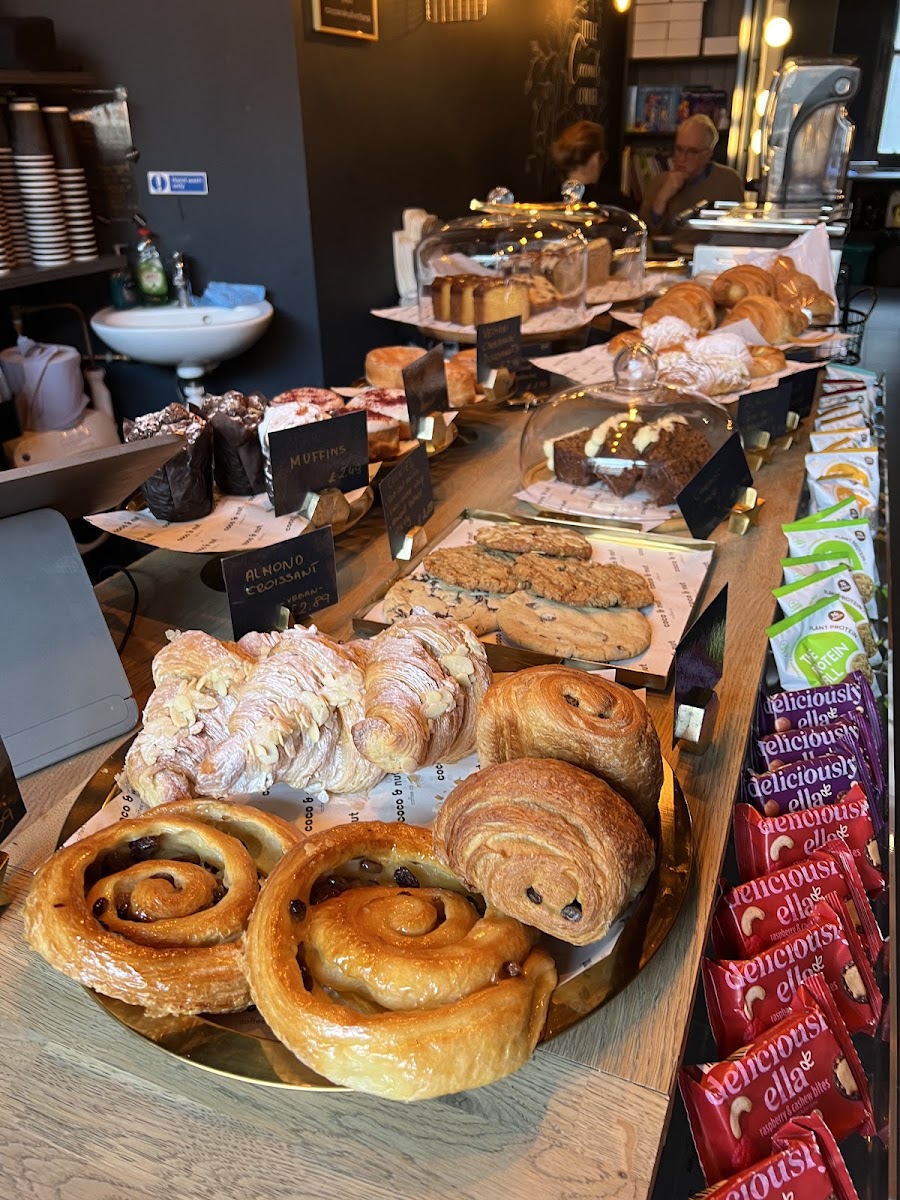 A charming cafe near Victoria station. There is a good selection of savoury and sweet items on the menu (including cooked food - I had poached eggs and avocado on toast). Very friendly staff. WiFi available.